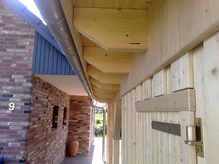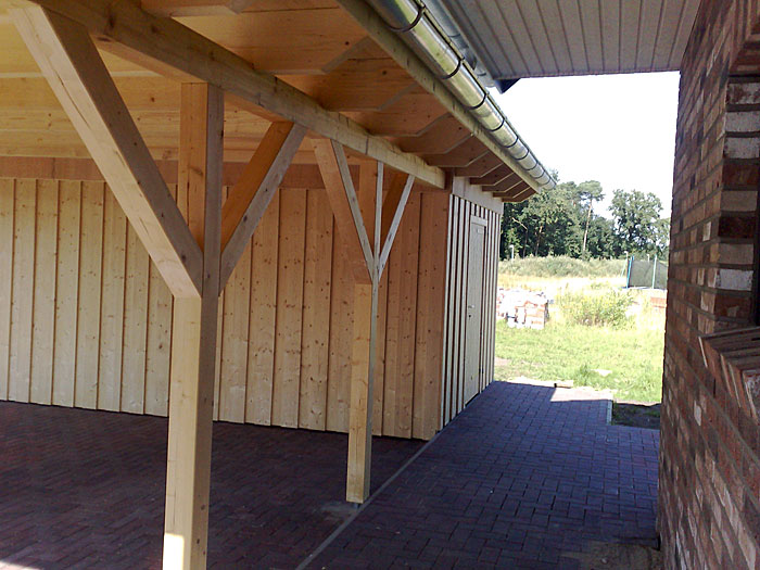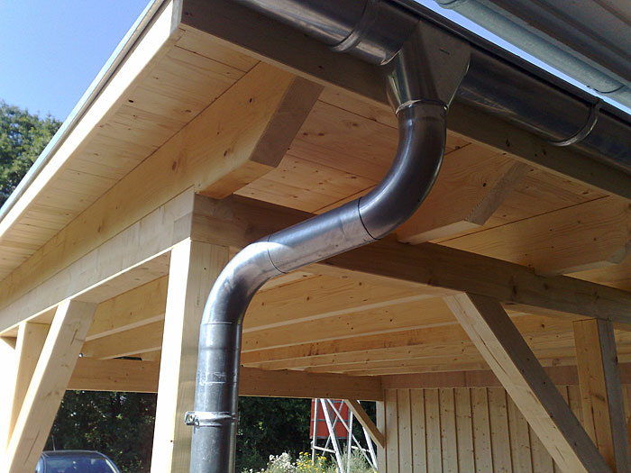 komplett sichtbare Konstruktion, Konstruktionsvollholz, gehobelt - gefast - getrocknet auf ca. 18%, großer Abstellraum / Dachrinne Titanzink, frei geplant |