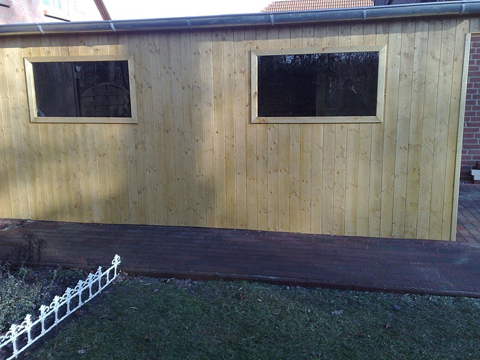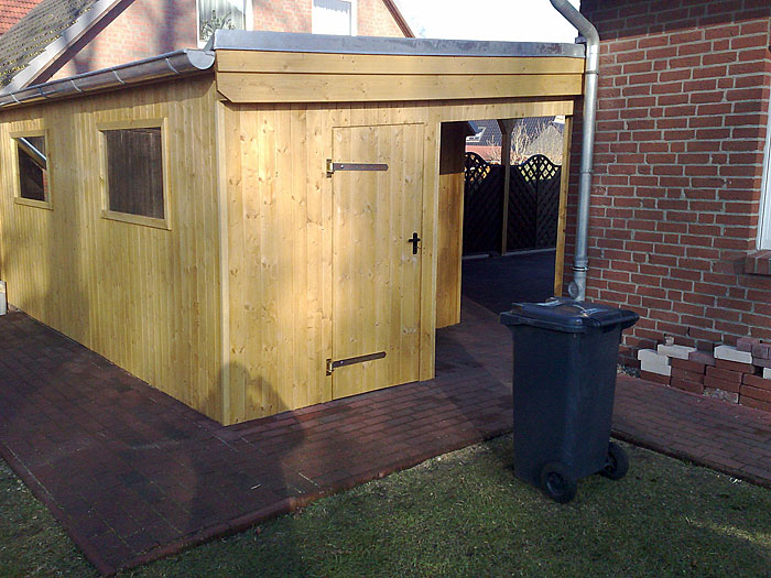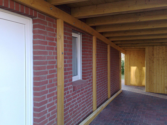 komplett sichtbare Konstruktion, Konstruktionsvollholz, gehobelt gefast getrocknet auf ca. 18%, Dachrinne Titanzink / sehr großer Abstellraum / Dachform speziell an Bebauungsvorschriften angepasst, frei geplant |