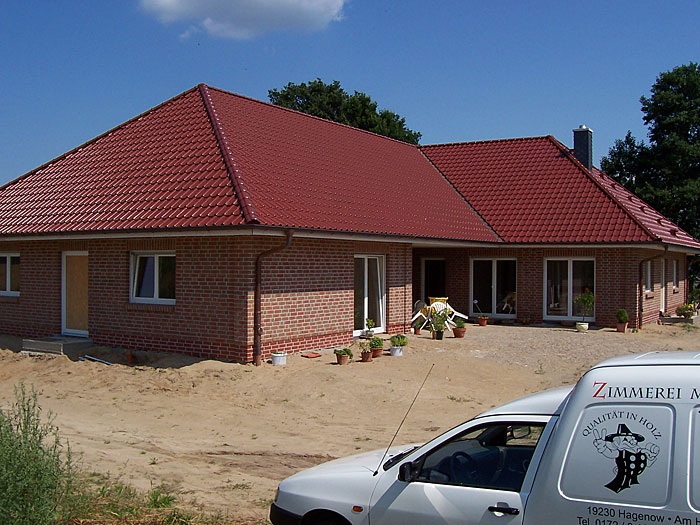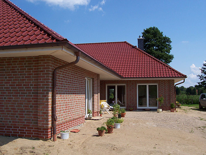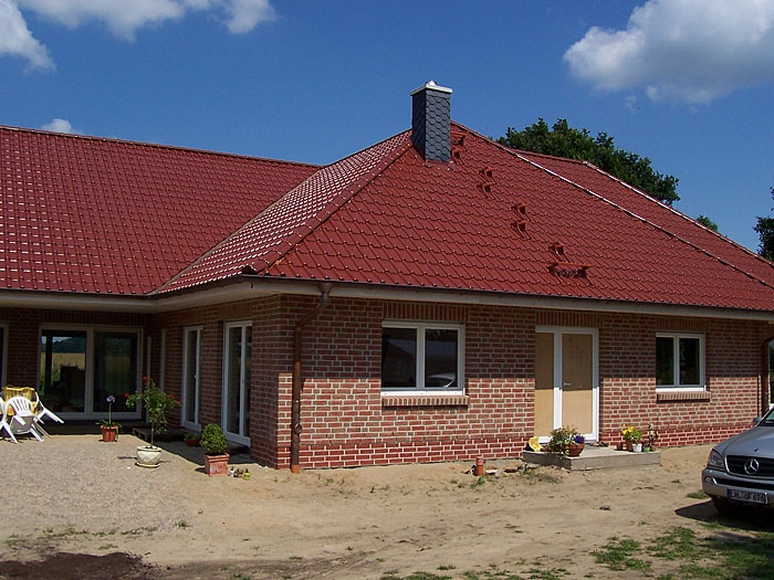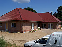 Neubau ca. 450 qm Dachfläche / Dachziegel: Creaton Tonziegel glasiert/ Unterspannbahnen „Delta Maxx“ Laufanlage für Schornsteinfeger / Schornstein verschiefert mit Naturschiefer |